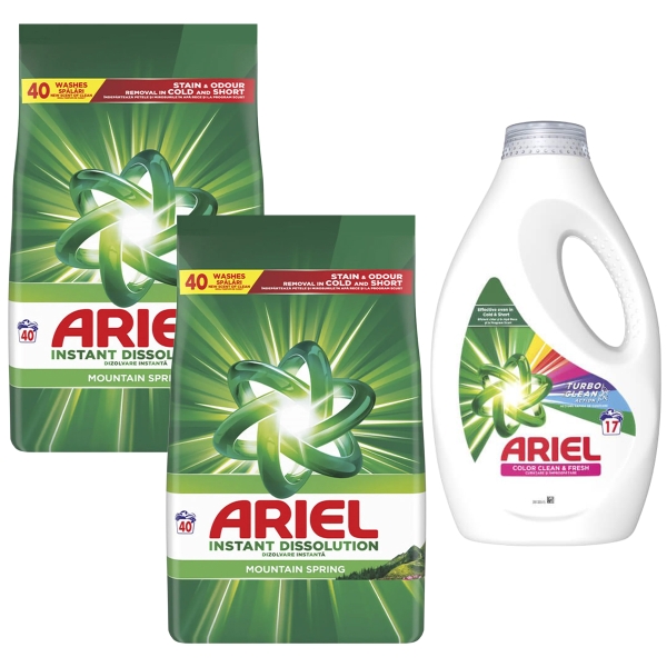 PACHET ARIEL DETERGENT PUDRA AUTOMAT 2X2.6KG+ARIEL LICHID 765ML