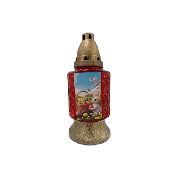 CANDELA STICLA CU CAPAC IEPURE SI COS CU OUA ALB/ROSU PB-419-OUA-IEP-AR